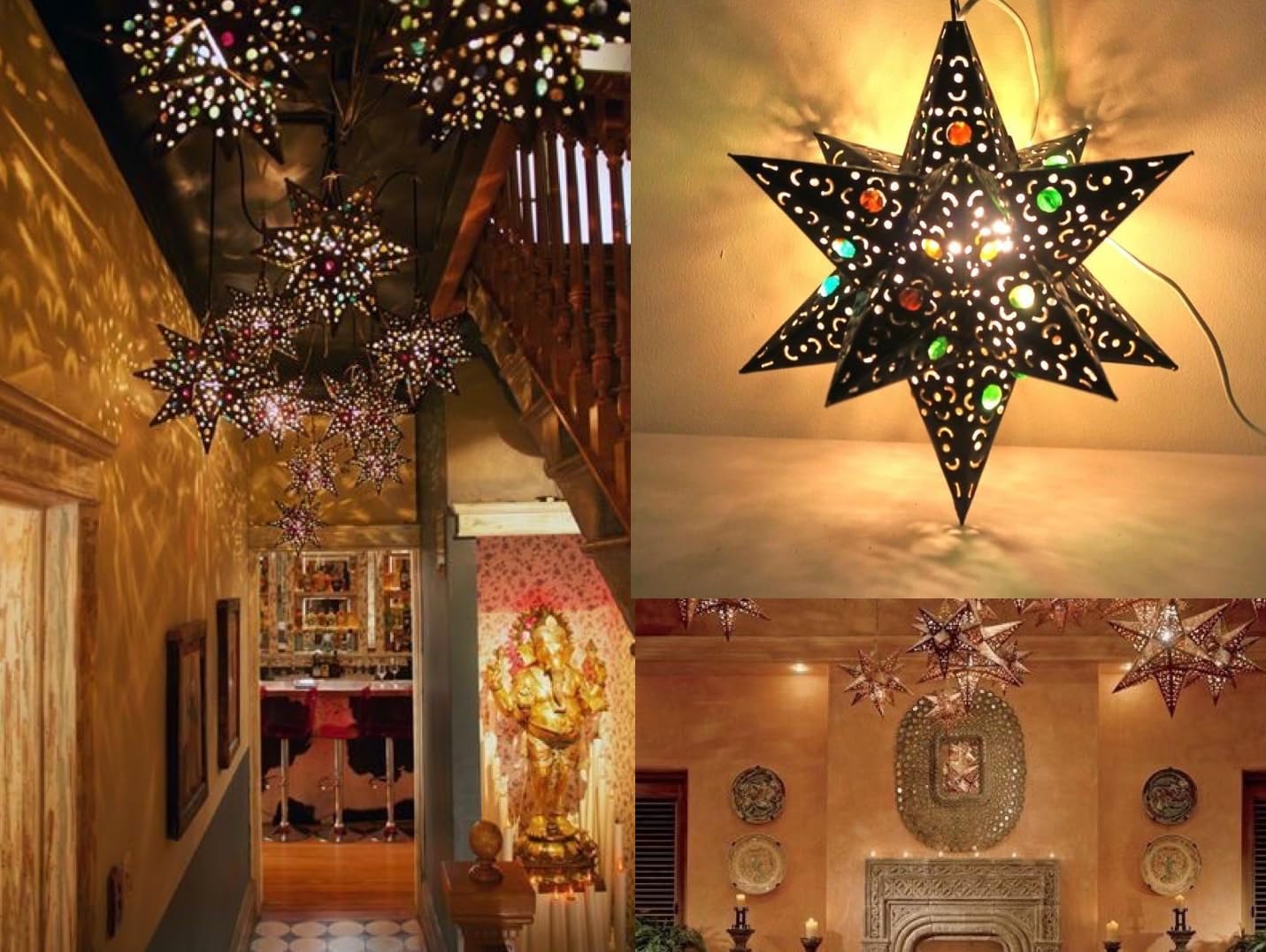 Transform your space with this enchanting 12-point hanging star lantern, a stunning piece of handcrafted artistry that measures 12x12 inches. The intricate design features carefully placed marbles that create mesmerizing light patterns when illuminated, making it a captivating focal point for any room. Perfect for both indoor and outdoor settings, this versatile lantern adds a touch of magic to your home decor or garden ambiance. The star-shaped design casts beautiful shadows and creates an ethereal atmosphere that's perfect for special occasions or everyday enjoyment. Each lantern showcases detailed craftsmanship, bringing together traditional design elements with contemporary appeal. Whether suspended from your porch, brightening up your garden, or adding warmth to your living space, this star lantern creates an enchanting atmosphere that will delight both residents and guests alike.