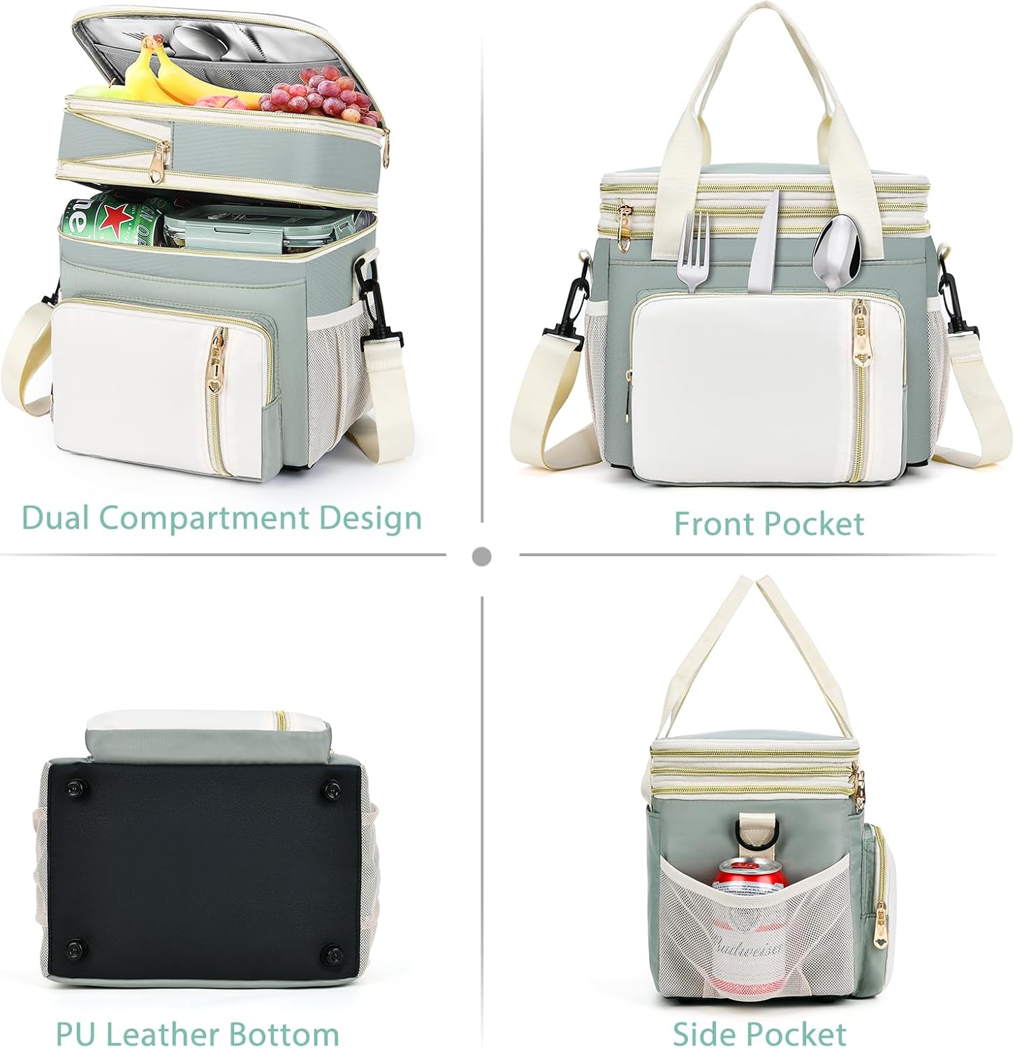 • 【Double-Layer & Large Capacity】 LOKASS lunch bag's regular size is 12L, and the top compartment can be expanded to increase the capacity by 4L. The lunch box for women features multiple pockets that are enough to hold items such as tableware, drinks, napkins, etc., and are convenient for classified storage to keep items neat and orderly.