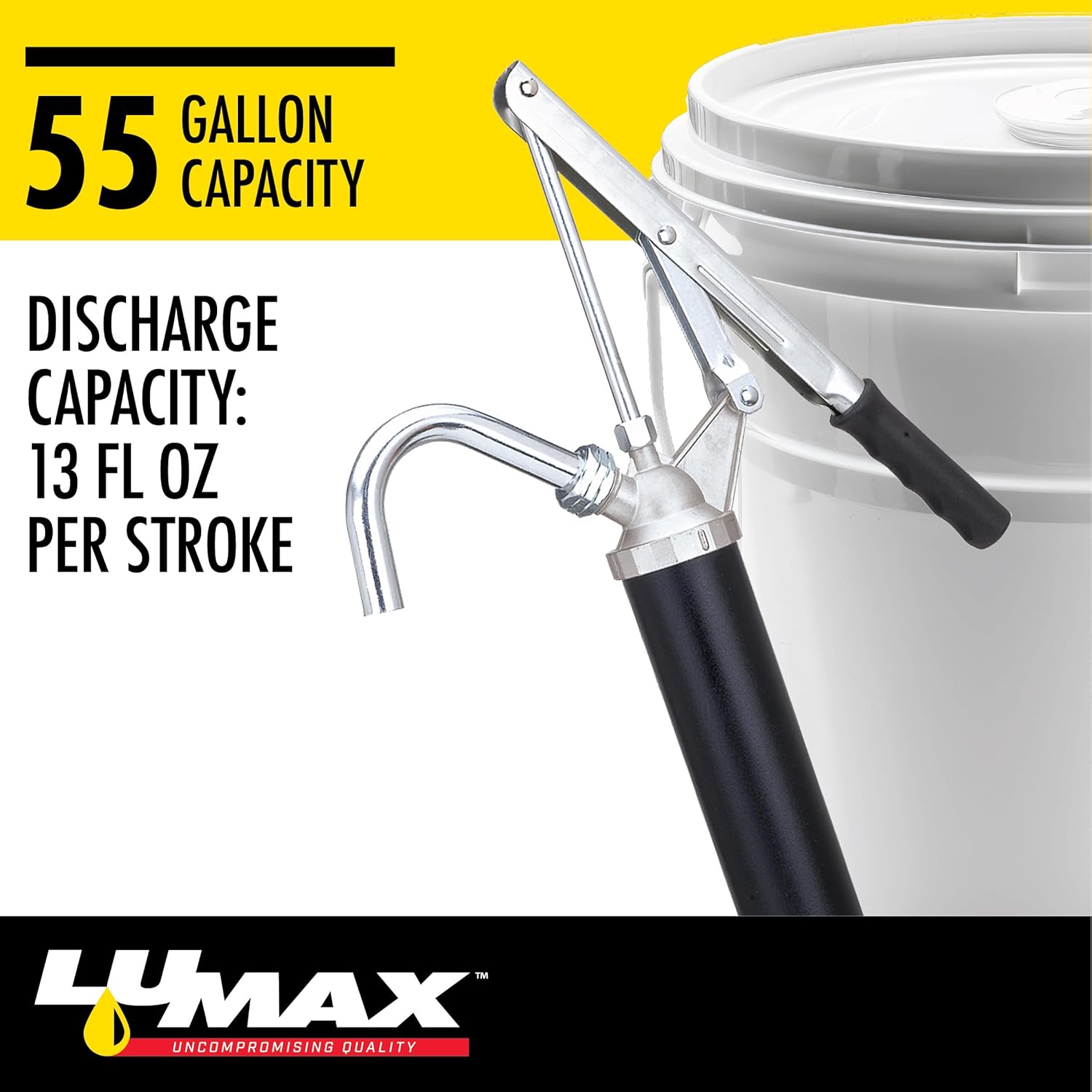 The LX-1316 Heavy Duty, Lever-Action Barrel Pump that Fits 15-55 Gallon (57-210 L) Drums with Standard 2" (50 mm) Bung Opening. Designed for fast transfer of Non-Corrosive Fluids, such as, Heating Oil, Motor Oil, Transmission Fluid, Automotive Additives (Oil Based), Oils (Light and Heavy), Soaps, etc. Unique Toggle Mechanism Design uses Compound Leverage for Pumping with little effort - Delivers Fast transfer of Fluids. Lumax is a manufacturer of lubrication and fluid management products. Our products, including grease guns, manual and electric pumps, funnels, drains, grease fittings, filter wrenches, and accessories, are built to the highest standards and incorporate many proprietary features. Lumax's mission is to provide professionals and consumers with innovative and high-quality products to get the job done right. Product development at Lumax goes beyond the physical product, to a deeper understanding of the end-users' needs. Engineered with the "user-in-mind, " Lumax products are built to the highest standards and incorporate many unique features that make work easier, faster and cost-effective. We have a passion for the design process. We listen to our customers and their ever-expanding requirements. Our unique products lead the field in design, quality, and performance.
